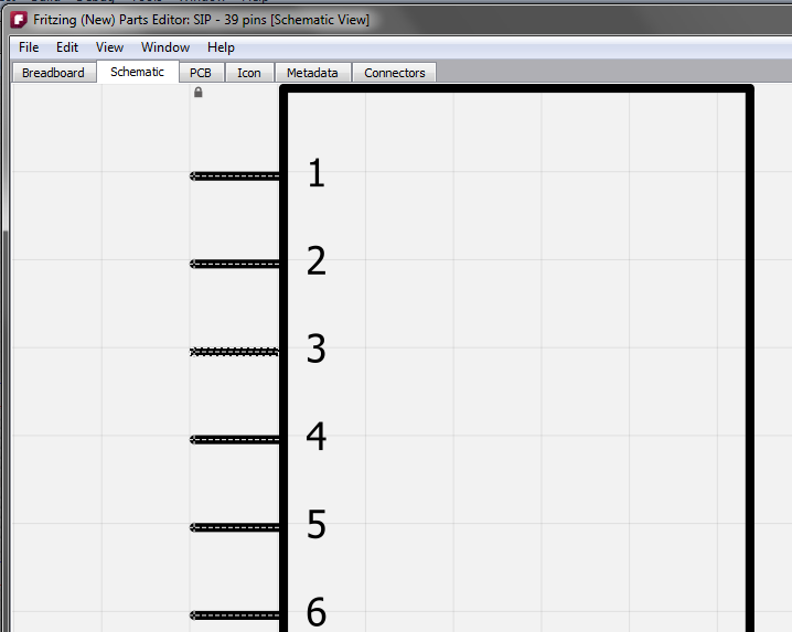 The new part will have 39 pins, so we begin with a Generic IC part and drag it into an empty sketch. There we use the Inspector to change it a to SIP and give it 39 pins. Then we open that in the new Parts Editor with a right-click.