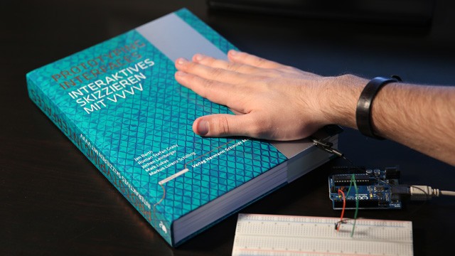 We just got a note from Mark Lukas about the release of their book Prototyping Interfaces that teaches and showcases how to build interactive things with vvvv and Arduino. They used lots of Fritzing sketches to illustrate their examples. A really nice idea is that they turned the book cover into a capacitive sensor.