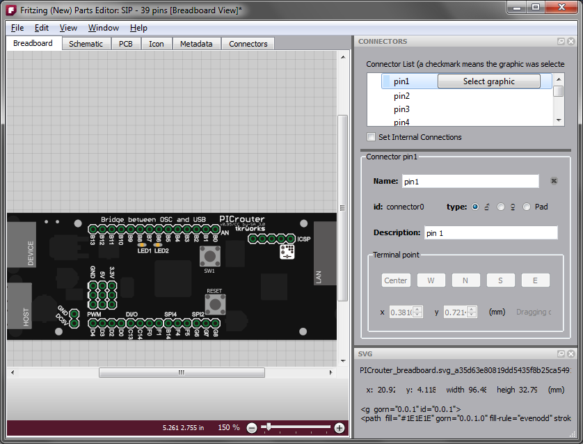 The next task will be to associate each connector with its counterpart in the SVG for each view. This is handled very differently from before. For an example, I am going to use images from a part created by Shunichi Yamamoto (who graciously gave us permission to include them in this tutorial, and who also helped beta test the new Parts Editor).
