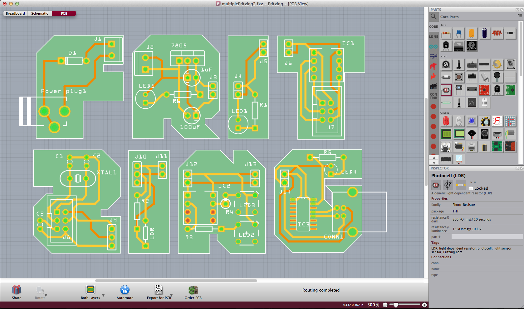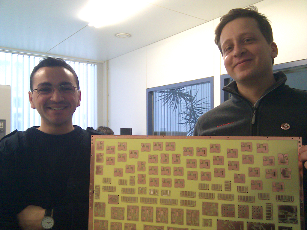 One year ago that dream came true when we launched our Fritzing Fab service. In a three-week cycle we collected the sketches from you, arranged them on a panel and sent them to our factory in Berlin. The first round consisted of 12 different PCBs from 9 users.