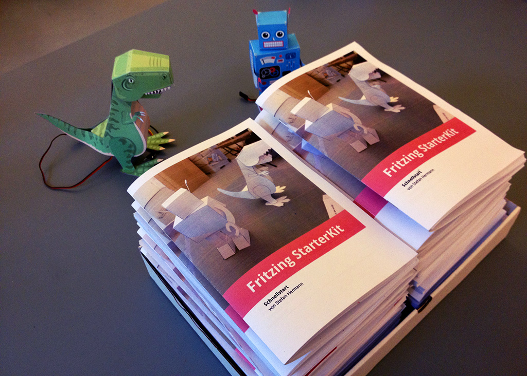 EN: Since this year we are working on an update for the new Fritzing StarterKit. We had a lot of positive feedback about the old one and learned a lot in our workshops and in courses at the universities. Those experiences will go into the new Kit, which will become more project based and playful. E. g. we will have paper models to provide a little use case for electronic components.