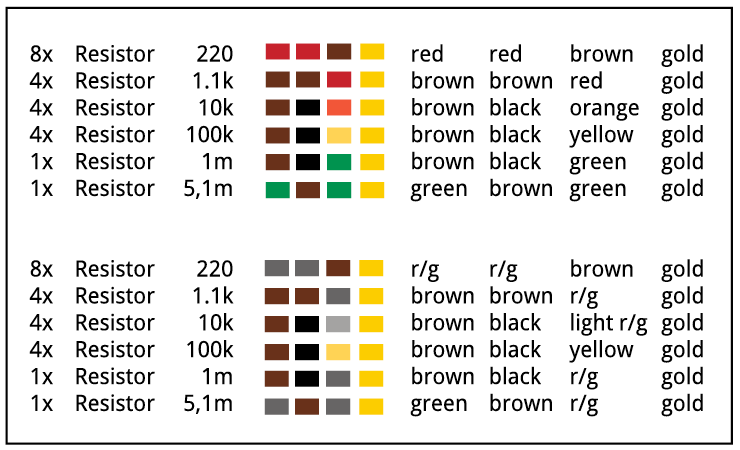 Das Kit zum selber löten besteht aus einfach zu montierenden THT (through hole technology) Komponenten und der Platine.