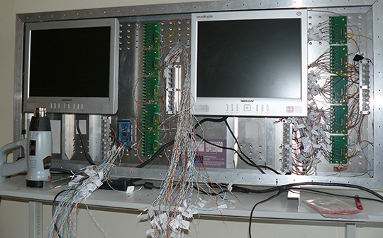 Robert used Fritzing to layout all the PCBs! The final version consists of the two monitors, two Arduino Megas, 26 buttons, 38 signal lights and two joysticks. The simulator software is written in C#.