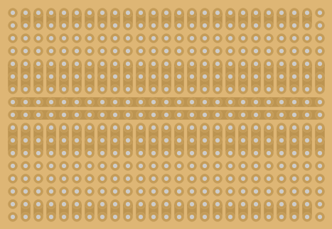 It would be easy to store other layouts with Fritzing. If you have a favorite stripboard layout that you think people would like to use, make the layout on a stripboard in a Fritzing sketch, and email the resulting file to info:at: fritzing :dot: org. In the email, tell us what part you’ve represented or why the layout is so useful. You may see that layout in a subsequent release of Fritzing.